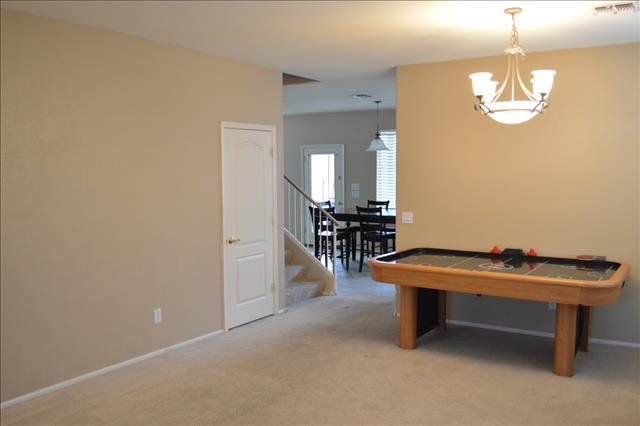 into the open kitchen and downstairs living area, with laundry, spare bathroom, and the door to your 3-car garage just around the corner. Upstairs a spacious loft gives you a place for the family away from downstairs guests, with three roomy bedrooms to the left (two of them with walk-in closets!) and the very spacious master on the right. In the master bedroom, vaulted