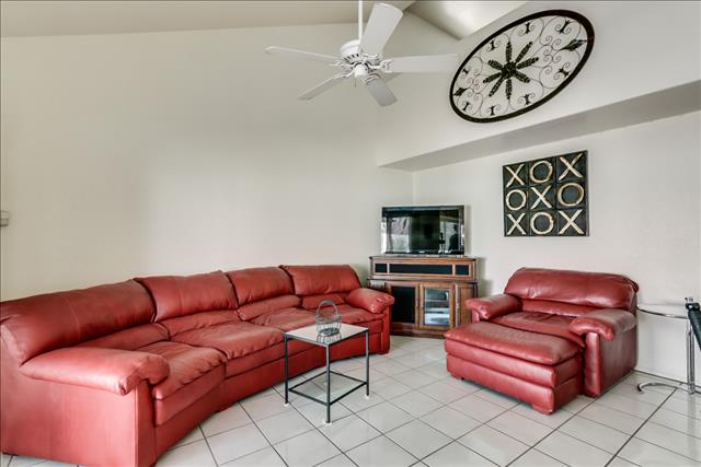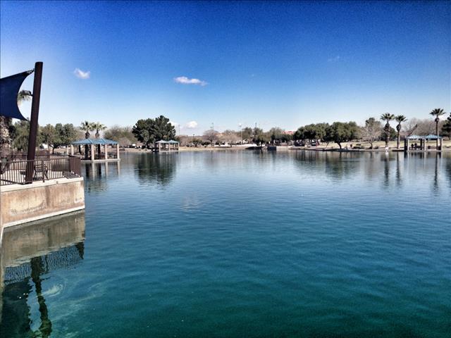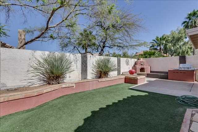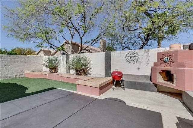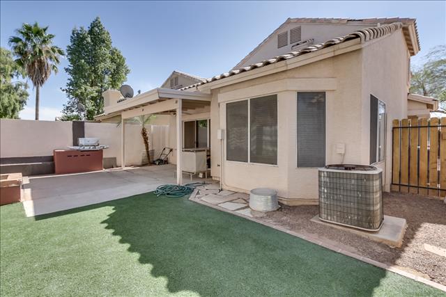 Absolutely immaculate home boasts a true pride of ownership! The crisp curb appeal adorned in low-maintenance artificial grass and desert landscaping, plus a cozy side entryway is simply a hint of what’s to come inside. From the moment you walk in, this floor plan beckons you to call it home. The foyer greets you with soaring vaulted ceilings and splits into the massive great room on one side and a gigantic downstairs master bedroom. Complimented by fans, designer paint, 2” faux wood blinds, tile and carpet, this home is turnkey and ready to move right in! The kitchen has endless counter space, white cabinets and an expansive breakfast bar off of the island. The light and bright family room with eat-in kitchen and bay window create the ideal space for entertaining. Combined with an Arcadia door exit to the pristine north facing backyard and spacious covered patio, this home really invites you to enjoy the indoor-outdoor living that our Arizona climate offers. The backyard has a concrete pad with built in fireplace and BBQ plus artificial turf and planter boxes that give you all the amenities without the maintenance hassles. Retreat into the spacious master suite and truly relax. The master bath boasts vanity lighting, dual sinks, separate tub with block glass privacy window and a tiled shower along with a substantial walk-in closet with plenty of storage. As you head upstairs, you’re welcomed into a loft that is the perfect space for a second family room, exercise equipment or kid’s play area. There are two more generously sized guest rooms split away from the loft that deliver all the space you’ll need. The community is highly sought after and offers community tennis court plus is located just a short walk to Desert Breeze park where you can enjoy the lake views, playgrounds, walking paths and even train rides for the kids! Hurry and check out this beautiful home today!