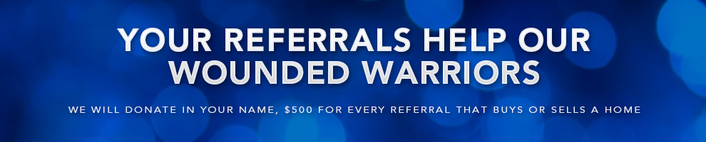 We will donate in your name, $500 for every referral that buys or sells a home. The money will go to buy the chairs for wounded warriors and then a place for them to enter their name and contact information and then the name of the person they are referring and their contact information along with whether the person is looking to buy, sell or both.